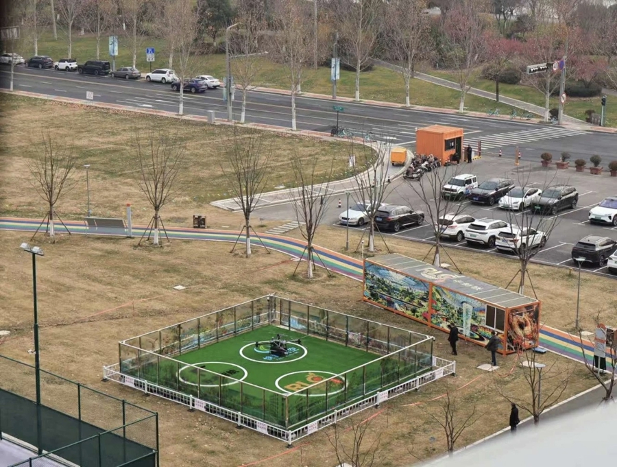 在江心洲E³ PARK体育公园一角,一座无人机停机坪格外引人注目。这里正是“城—岛—江”低空立体枢纽的所在地。